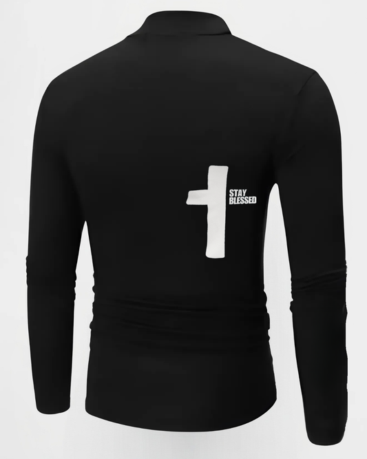 "Blessed By God" Half Turtleneck T-Shirt in Black