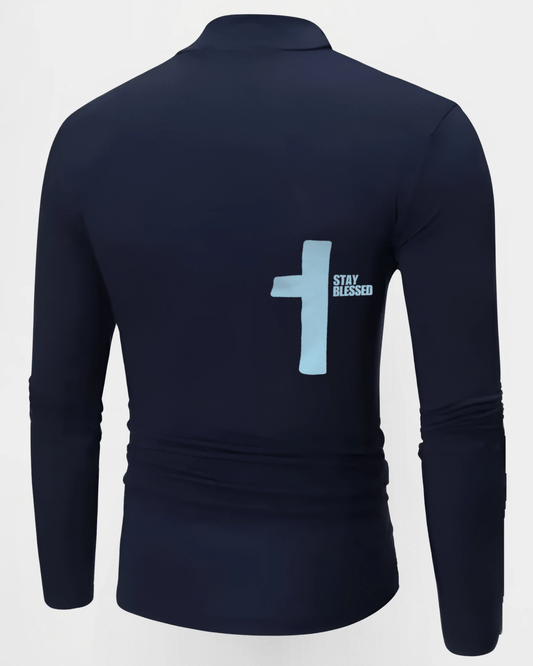 "Blessed By God" Half Turtleneck T-Shirt in Dark Blue